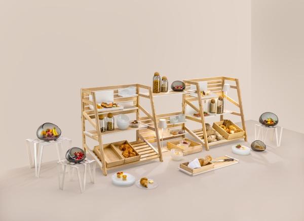 Tableware and furniture suppliers are taking notes of these demands and offering products as versatile, durable and sustainable as possible. German manufacturer Zieher’s “The Pantry” allows for different breakfast setups, as well as a natural ambiance with the organic, eco-friendly look and feel.