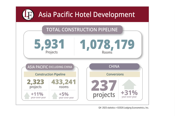 Glance at a map of hotel development activity and one thing becomes immediately clear: Asia Pacific, with 5,931 projects and 1,078,179 rooms, accounts for a massive share of worldwide new construction. But the real story isn’t just scale; it’s that Asia Pacific’s two largest areas—China and the rest of the region—are growing in fundamentally divergent ways. The upshot: Both strategies are reshaping the competitive landscape for years to come.