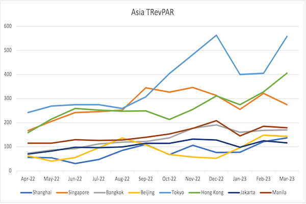 On a more optimistic note, we need to look at the performance of these two key Chinese cities in Q1 2023. The growth is immense and stable hitting TRevPAR of $140 USD, almost tripling from just 10 months previous. Growth will continue its gradual climb up as international confidence and seat capacities return on flights, both in and out of the country.