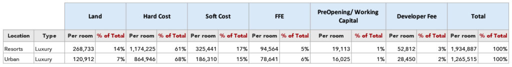 Notable in HVS’ survey was the number of luxury developments where all-in costs exceeded $2 million per room. This has been exacerbated by higher interest rates that make financing these projects even more onerous.Â
