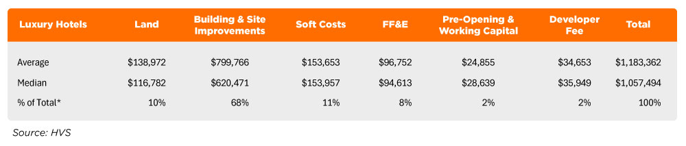 Notable in HVS’ survey was the number of luxury developments where all-in costs exceeded $2 million per room. This has been exacerbated by higher interest rates that make financing these projects even more onerous.
