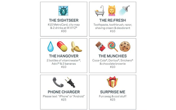 To order, guests text the corresponding emojis (shown below) from the TiGi menu to the hotel’s dedicated TiGi number with their room number. The hotel confirms the order using the thumbs up emoji, and delivers the kit to a guest’s room. Charges from TiGi show up on the guests’ final bills.